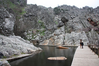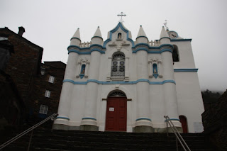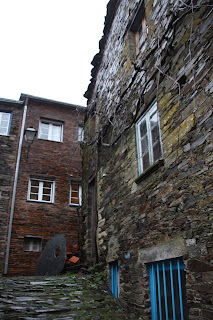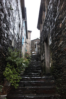 Estacionados na praça central, recuperamos energias à lareira, com iguarias locais, na esperança que São Pedro alterasse este seu temperamento "em bica". Mas nada. Uma pequena passeata por estas inóspitas ruelas não podia faltar mas o vento era tal, que se tornava uma luta segurar o guarda chuva nas mãos e os pés no chão.