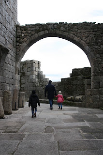 Chuvisca em Castelo Novo. Estacionamos no Largo do Município, junto ao pelourinho. Almoçamos nos nossos 18m2 abrigados, na esperança que a chuva se vá com o vento. Mas não. Guarda chuvas em punho e lá vamos nós. Miúdas felizes com pouco: não dizem mal da chuva; alegram-se por abrir suas preciosidades do "Frozen" ou da Minnie, num estilo transparente cool, menos bebé, diria a mais velha....
