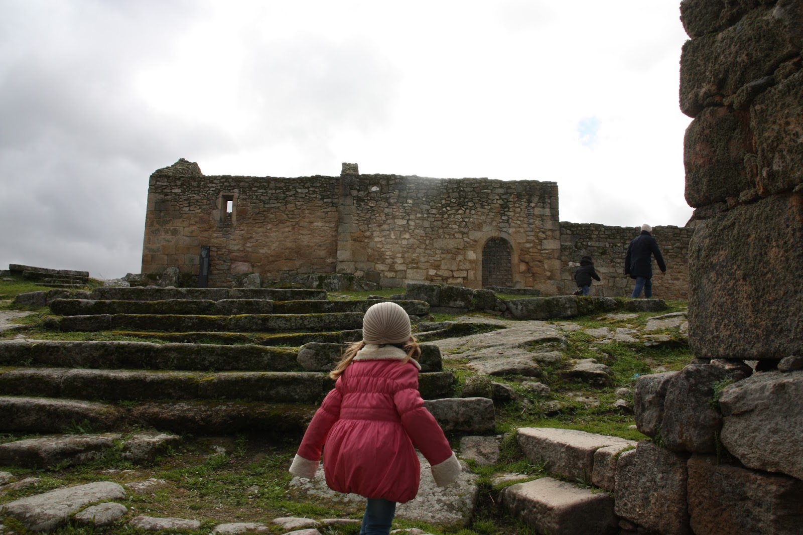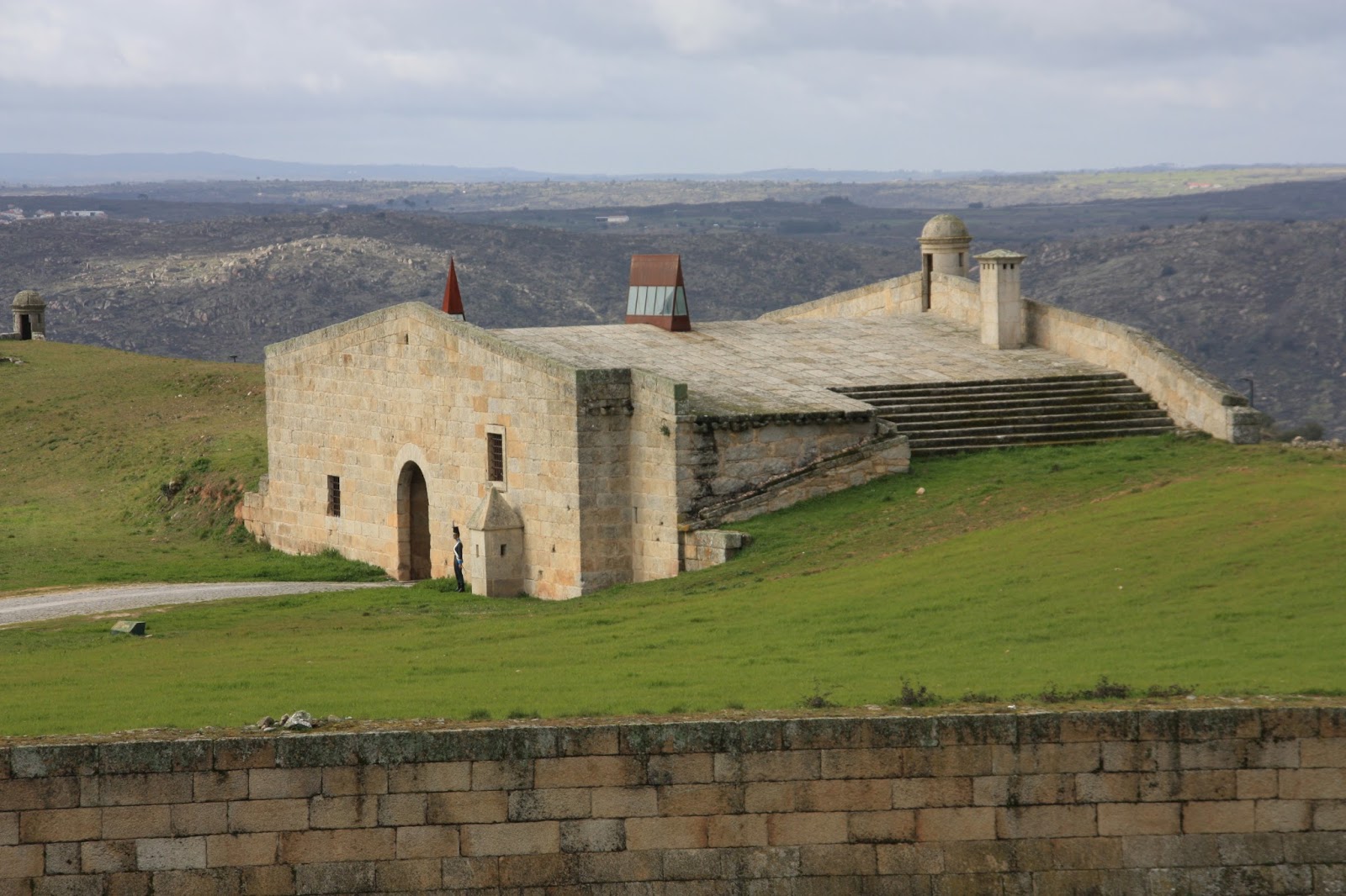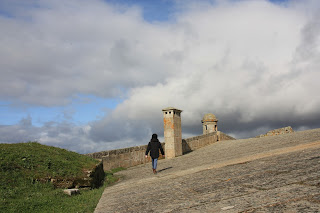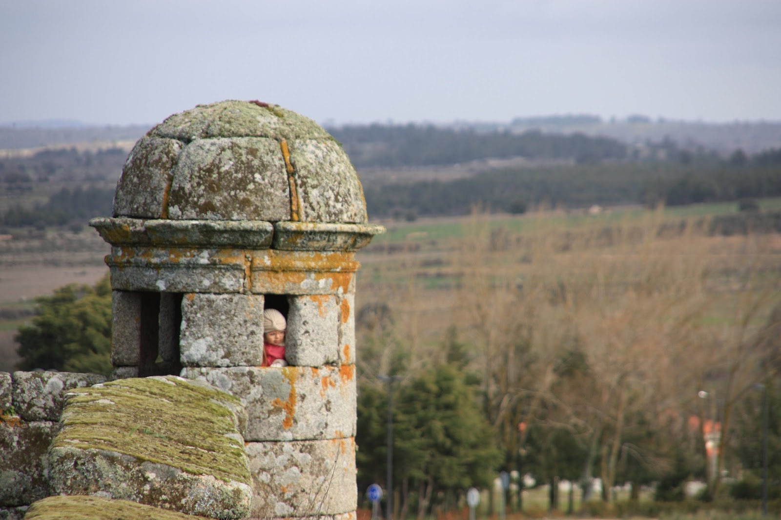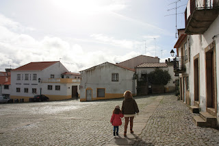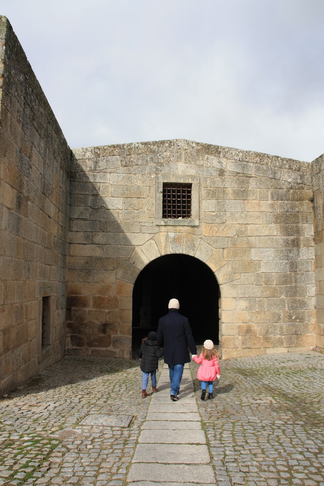 Seguiu-se Almeida, com sua muralha e jardins em estrela, onde as miúdas adoraram visitar o picadeiro. O vento era gelado, e foi a desculpa certa para a pausa para um chá na Pousada, com poderes de aconchego e aquecimento. Chá esse que nos deu também a coragem para subir a muralha e apreciar esta tão original moldura desta aldeia-quadro. Abre-se o sol que nos aquece numa caminhada pelas casas brasonadas, na subida aos telhados (!), na passagem por túneis que não são mais que as Portas Duplas de São Francisco da Cruz, no cumprimentar do soldadinho estátua. Almeida está vista e aprovada também!